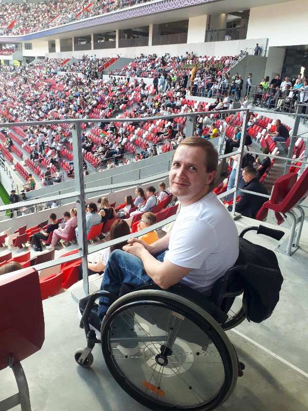 Получатель социальных услуг отделения социальной реабилитации, абилитации инвалидов ГУ «ТЦСОН Щучинского района» Салейко Дмитрий, 7 июня 2025 г. принял участие в торжественной церемонии открытия Национального футбольного стадиона в г. Минске