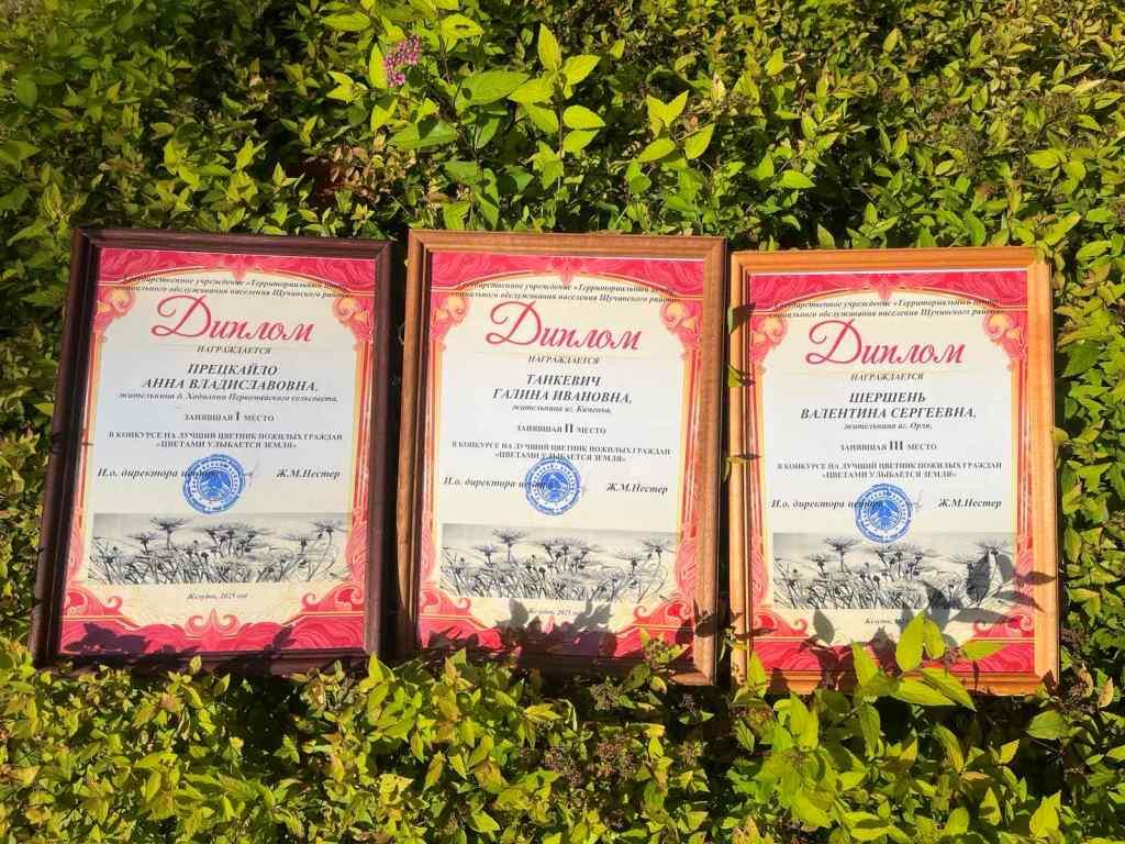 В конкурсе на лучший цветник пожилых граждан «Цветами улыбается земля» были отмечены лучшие из лучших. Директор центра Светлана Владимировна Шанчук вручила дипломы и ценные подарки тем, кто превратил свои усадьбы в настоящие цветники. Победу одержала Прецкайло Анна Владиславовна, жительница д. Ходилони. Второе место заняла Танкевич Галина Ивановна, проживающая в аг. Каменка. Третьего места удостоена Шершень Валентина Сергеевна, жительница аг. Орля.
